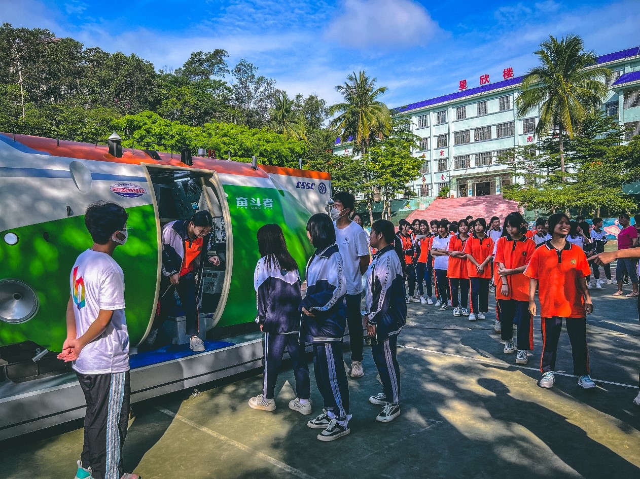 5月18日,結合海南省十八屆科技活動月活動啟動儀式,深海所在五指山市三月三廣場舉辦了“載人深潛”科考成果展,播放了“奮斗者”號海試紀錄片,向公眾介紹載人潛水器及其母船的研制與作業(yè)過程。19日,“奮斗者”號載人潛水器走進五指山市紅星學校,科學部研究助理高映雪、工程部研究生冉明濤先后帶來《海洋哺乳動物研究與保護》、《典型深海探測裝備》科普講座,五指山市紅星學校24個班級1030余名學生和五指山市熱海院附屬中學全體學生在線收看了科普講座直播。