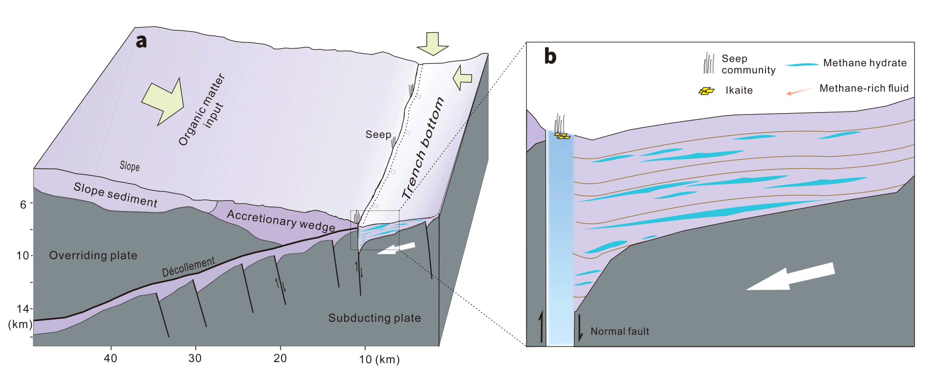 該研究對(duì)理解地球深部碳循環(huán)具有深遠(yuǎn)意義。通過地球化學(xué)分析,研究人員發(fā)現(xiàn)這些環(huán)境中的甲烷實(shí)際上是由沉積層深處的微生物活動(dòng)產(chǎn)生的。這一結(jié)果表明,在深淵海底之下還存在著一個(gè)前所未知的、龐大活躍的深部生物圏,不斷將由沉降有機(jī)質(zhì)分解而來(lái)的二氧化碳轉(zhuǎn)化為甲烷。因此,這一過程可能封存了大量的從上層海洋沉降的有機(jī)碳,并以天然氣水合物等形式在深淵海底形成規(guī)模巨大的甲烷儲(chǔ)庫(kù),挑戰(zhàn)了傳統(tǒng)的深海碳循環(huán)和碳收支模式。